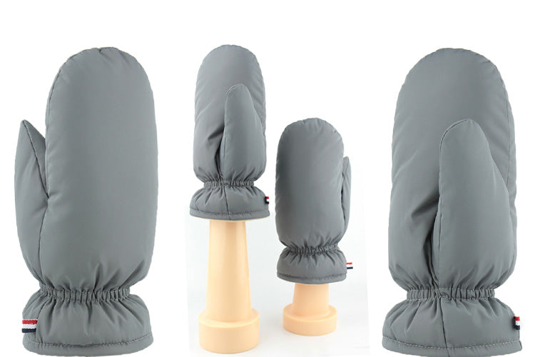 Supply category: spot Use classification: bicycle gloves Applicable gender: unisex Function: Keep warm Pattern: plain Style: Mittens Color: black, light gray, red Size: one size Suitable season: winter Applicable object: Youth Filling: 90% white duck down, 10% wool Fabric: 100% polyester fiber, inner heating polar fleece