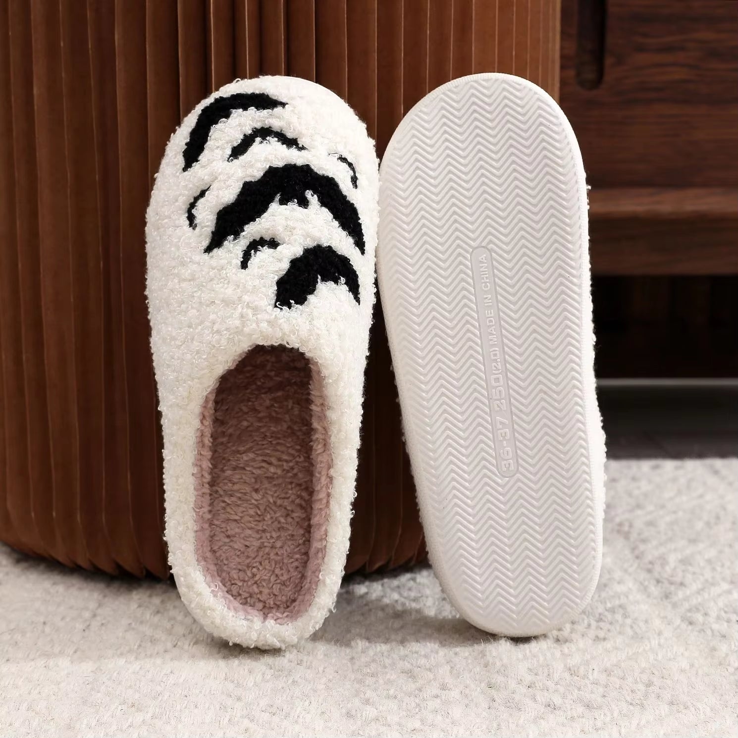 Bat Pattern Embroidery Stuffed Home Thick-soled Cozy Furry Cotton Slippers Halloween Christmas Slippers Checkered Scuff For Women And Men Holiday Indoor Bedroom Fluffy Warm Fleece Slippers